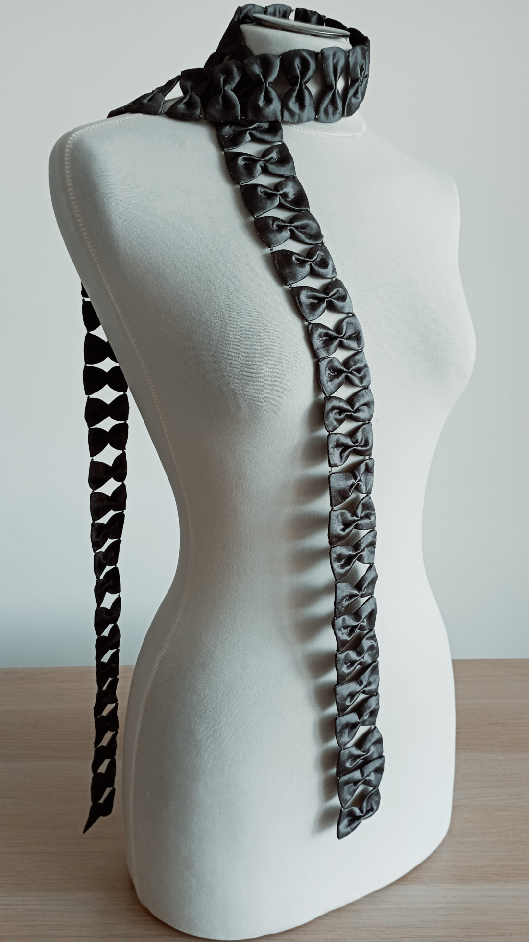 Des sautoirs qui deviennent des faux cols… Les tours de cou s’associent, se superposent, s’accumulent… Quant aux ceintures, elles se transforment en colliers tels de fines écharpes d’été, ainsi que des pendentifs de différentes tailles à porter sur les tours de cou ou des chaînes…