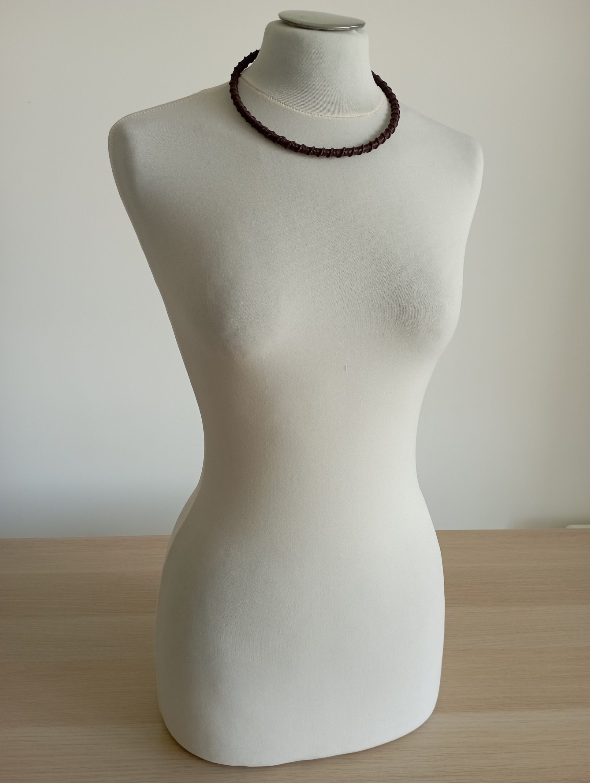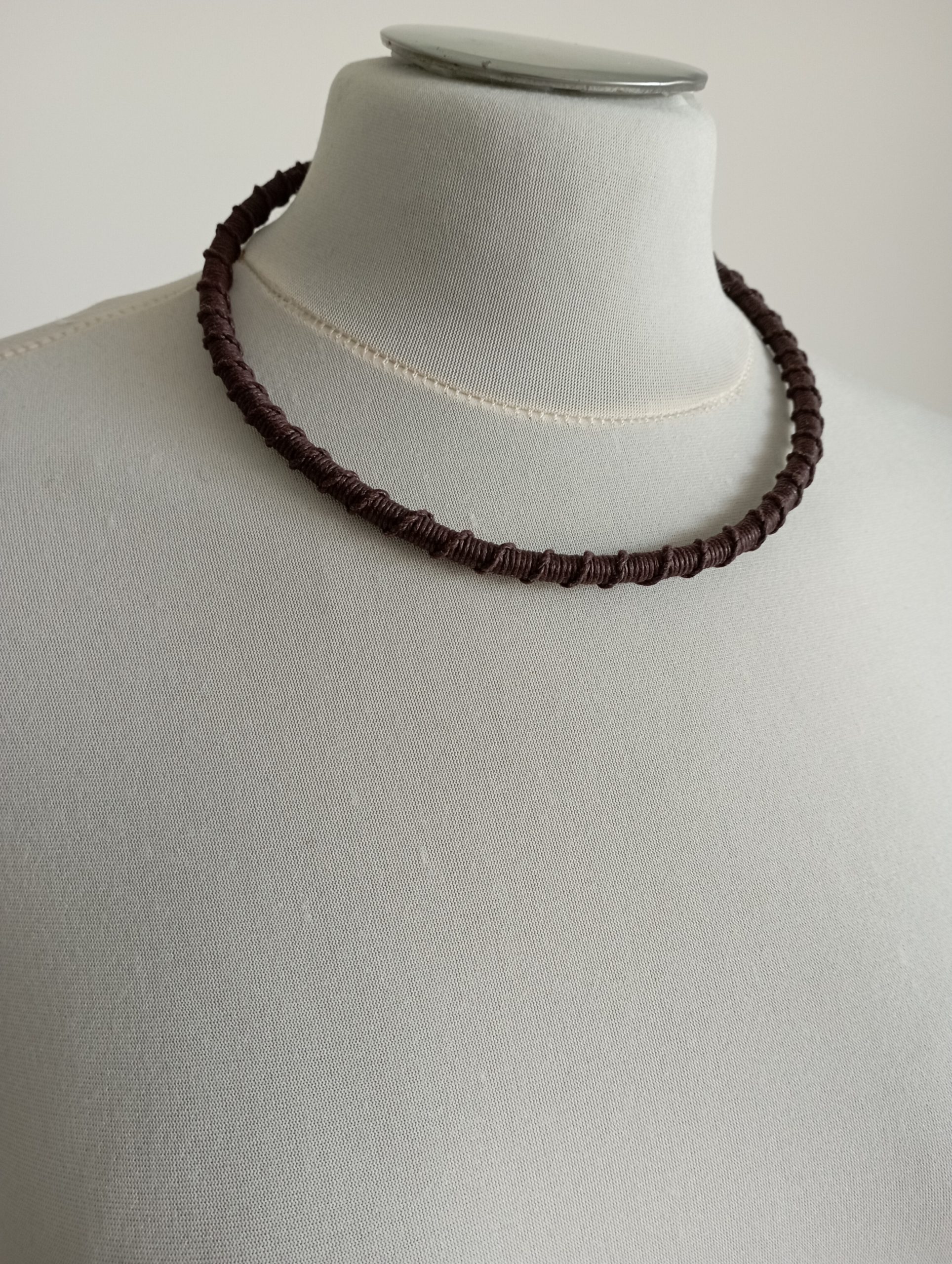 Tour de cou « Torsade » réalisé avec du fil de coton glacé de couleur chocolat, avec un fermoir mousqueton et embout en laiton de couleur bronze. A porter seul tel quel ou avec un pendentif « Ewa » de votre choix. Ou encore cumulé avec d’autres tour de cou. Une belle bas pour créer look du jour.